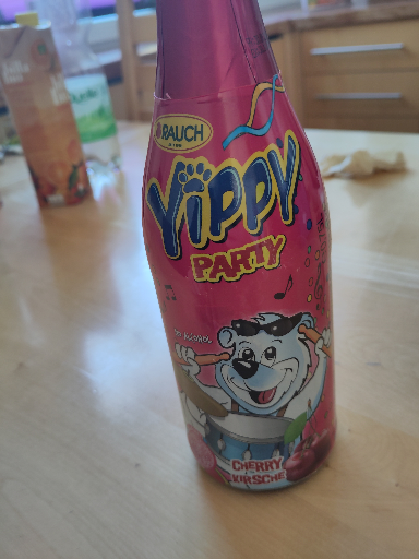 Yippy Party Cherry is a non-alcoholic sparkling drink designed for children, produced by Rauch Fruchtsäfte GmbH & Co OG, an Austrian company established in 1919. The Yippy brand offers a variety of fruit-flavored beverages, including the Yippy Party Cherry, which is a cherry-flavored soft drink. While primarily manufactured in Austria, Rauch also produces its products in other locations to meet regional demand. The Yippy Party Cherry drink is characterized by its vibrant pink color and is available in a 0.75-liter bottle, making it suitable for parties and family gatherings. The drink contains 10% sour cherry juice, sugar, carbonated water, citric acid as an acidulant, and preservatives such as sodium benzoate and potassium sorbate. It is free from artificial colors and flavors, aligning with Rauch's commitment to quality and natural ingredients. The Yippy Party Cherry drink is part of Rauch's broader Yippy product line, which includes other flavors like white grape and apple berry mix, all catering to children's taste preferences and nutritional needs. Rauch Fruchtsäfte GmbH & Co OG continues to innovate and expand its product offerings, maintaining its position as a leading beverage manufacturer in Austria and beyond.