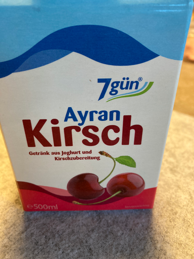 7 gün Ayran Kirsch is a yogurt-based beverage flavored with cherry, combining the traditional Turkish drink Ayran with a fruity twist. The brand '7 gün' is well-known in Turkey for its dairy products, particularly yogurt drinks. Yörsan, the company behind the brand, has established itself as a significant player in the dairy industry, focusing on quality and innovation. The product is manufactured in multiple countries to meet the demand for this popular beverage.