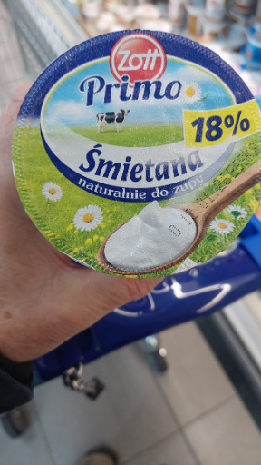 Zott Primo is a brand of dairy products produced by Zott SE & Co. KG, a German company renowned for its high-quality yogurts and creams. The 'Śmietana 18%' is a homogenized cream with 18% fat content, available in 180g packaging. It contains only natural ingredients, including fresh milk and live lactic acid bacteria cultures, ensuring a 100% natural product. The cream is produced in Poland by Zott Polska Sp. z o.o., a subsidiary of Zott SE & Co. KG. This product is ideal for culinary applications, such as enriching soups and sauces, and is also available in lactose-free versions. The barcode 5906040063287 corresponds to this specific product variant.