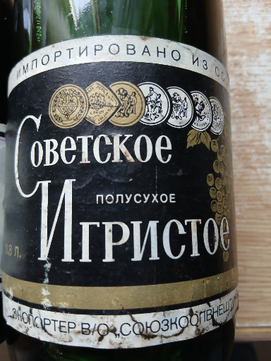 Советское шампанское, also known as Soviet Champagne, is a renowned sparkling wine that originated in the Soviet Union. Introduced in 1936, it was produced by state-owned enterprises using selected grape varieties. The wine is characterized by its light straw-golden color and a delicate aroma with floral and fruity notes. It offers a harmonious, well-balanced, moderately sweet taste with a lingering aftertaste reminiscent of toasted bread. Traditionally, it was produced in Russia, but over time, production expanded to other countries, including Moldova. In Moldova, the wine is produced and bottled, maintaining the classic recipe and quality associated with the original Soviet Champagne. The brand's ownership has evolved over time, and as of 2025, specific details about its current ownership are not publicly available. The wine remains a popular choice for celebrations and is often enjoyed as an aperitif or paired with light appetizers, fish, and seafood dishes.