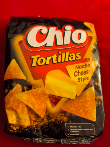 Chio Tortillas Nacho Cheese Style are crunchy tortilla chips made from golden-yellow corn, seasoned with a spicy cheese flavor. They are produced by Intersnack Knabber-Gebäck GmbH & Co. KG, a subsidiary of the Intersnack Group, headquartered in Germany. The product is primarily manufactured in Germany, but also produced in other locations. The brand 'Chio' was originally founded in Germany and is known for its wide range of snack products. The Intersnack Group, the ultimate owner of the brand, is a leading European snack manufacturer, producing a variety of snack products under various brand names. The brand is headquartered in Germany, and there are no known local subsidiaries owning the brand.