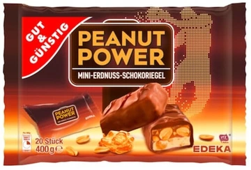 Edeka is a well-known German supermarket chain that offers a variety of products, including its own private label brands. The Peanut Power Mini-Erdnuss-Schokoriegel is a confectionery product that features a combination of peanuts and chocolate, appealing to snack lovers. Edeka's products are primarily manufactured in multiple countries, ensuring a diverse supply chain while maintaining quality standards. The brand is recognized for its commitment to providing affordable yet quality products to consumers.