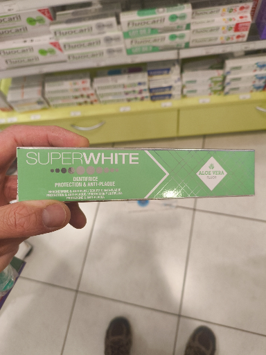 Superwhite Dentifrice Aloe Vera is a toothpaste designed for daily oral hygiene, offering benefits such as fresh breath, enamel protection, and care for teeth and gums. The brand 'Superwhite' originates from Belgium, where it is produced by the company Biosynex. Biosynex is known for its health and hygiene products, including the Superwhite toothpaste line. The toothpaste is manufactured in multiple countries, ensuring a broad distribution and availability. The product is available in various European countries, including France, Belgium, and Switzerland, through online pharmacies and retailers. The barcode '3532678589688' is associated with this product, facilitating its identification in retail and online platforms.