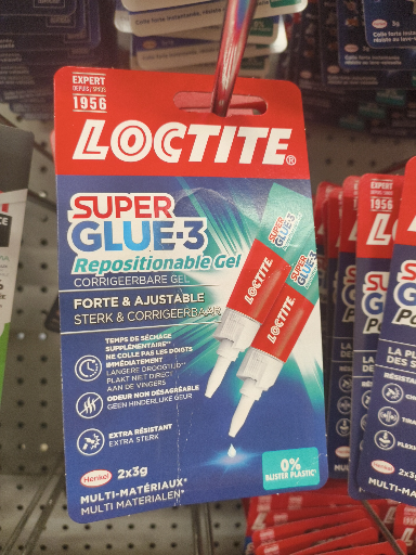 Loctite Super Glue 3 Repositionable Gel is a versatile adhesive designed for precise bonding of various materials such as porcelain, ceramics, metals, plastics, leather, rubber, wood, cardboard, paper, and fabric. Its gel formulation allows for repositioning within 20 seconds, providing flexibility during application. The adhesive dries clear, is odorless, and is solvent-free, making it suitable for use in environments like kitchens and bathrooms. The product is manufactured in multiple countries, with Henkel AG & Co. KGaA, headquartered in Germany, being the ultimate owner. Henkel is renowned for its wide range of consumer and industrial products, including adhesives, beauty care, and home care items.