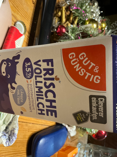 Gut & Günstig Frische Vollmilch is a fresh whole milk product with a 3.5% fat content, produced by EDEKA ZENTRALE Stiftung & Co. KG, a leading German supermarket chain. The milk is sourced from German farms and is pasteurized and homogenized to ensure quality and safety. EDEKA ZENTRALE Stiftung & Co. KG is a cooperative of independent retailers, operating a network of supermarkets and hypermarkets across Germany. The brand 'Gut & Günstig' is exclusive to EDEKA and offers a wide range of affordable products, including dairy items like this fresh whole milk. The milk is packaged in 1-liter cartons and is available in EDEKA stores throughout Germany. The product is free from genetically modified organisms (GMO) and is suitable for various uses, including drinking, cooking, and baking. The milk is also available in different fat contents, such as 1.5% and 3.5%, catering to different consumer preferences. The packaging is designed to maintain freshness and extend shelf life, ensuring that consumers receive a high-quality product. EDEKA ZENTRALE Stiftung & Co. KG continues to focus on providing fresh and affordable dairy products to meet the needs of its customers.