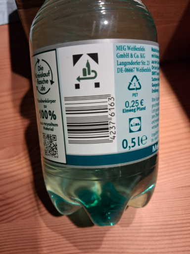 MEG Weißenfels is a well-known brand in Germany, primarily recognized for its mineral water products. The company, MEG Weißenfels GmbH & Co. KG, is based in Weißenfels, Germany, and focuses on providing high-quality mineral water sourced from local springs. The product is packaged in a convenient 0.5-liter bottle, making it easy for consumers to stay hydrated on the go. The brand emphasizes sustainability, as indicated by its use of recyclable materials in packaging.