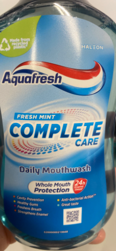 Aquafresh is a well-known brand in the oral care market, originally founded in the United Kingdom. The brand is recognized for its range of toothpaste and mouthwash products designed to promote oral hygiene. The Complete Care Daily Mouthwash offers comprehensive protection for the mouth, including cavity prevention and fresh breath. Currently, Aquafresh is owned by Haleon, a company that emerged from GlaxoSmithKline, focusing on consumer health products. The mouthwash is manufactured in multiple countries, ensuring a wide distribution and availability.
