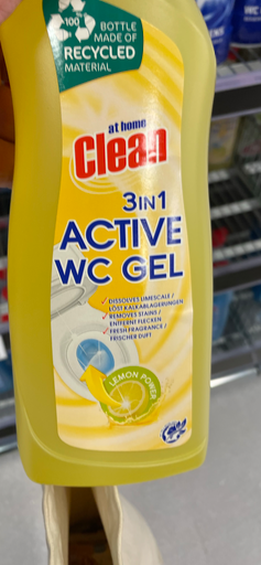At Home Clean 3in1 Active WC Gel is a toilet cleaner gel designed to dissolve limescale, remove stains, and leave a fresh scent. The product is manufactured in multiple countries, including the Netherlands, and is distributed by Maxbrands Marketing, a Dutch company specializing in household cleaning products. The barcode 8718924871843 is associated with this product, indicating its availability in various markets. The 'At Home' brand is known for its range of cleaning solutions, and Maxbrands Marketing continues to oversee its production and distribution.