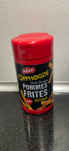 HOFF Opphøgde Pommes Frites Krydder Grill is a popular Norwegian seasoning blend designed to enhance the flavor of French fries and other potato dishes. Manufactured by HOFF SA, a Norwegian company known for its potato products, this seasoning is made from ingredients such as salt, paprika, sugar, onion, and various spices. It is widely available in Norwegian supermarkets and is also used in other HOFF products like Opphøgde Poteter med Grillkrydder, which combines Norwegian quality potatoes with this seasoning blend. HOFF SA continues to be a leading producer of potato-based products in Norway.