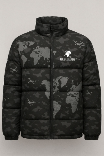 DC Shoes is a well-known brand in the action sports industry, particularly recognized for its skateboarding and snowboarding apparel. Founded in the United States, the brand has established a strong presence in the global market. The puffer jacket shown features a unique design with a world map pattern, reflecting the brand's adventurous spirit. DC Shoes is currently owned by Quiksilver, Inc., which oversees a range of brands in the action sports sector.