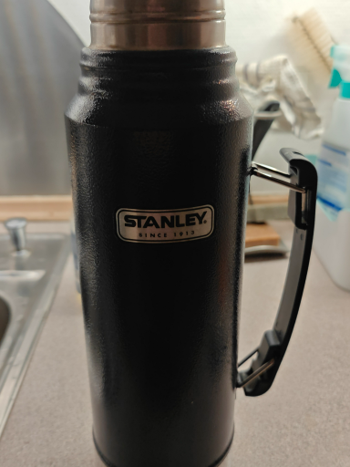 The Stanley Classic Vacuum Insulated Wide Mouth Bottle is a durable thermos designed to keep beverages hot or cold for extended periods. Constructed from 18/8 stainless steel, it features double-wall vacuum insulation and a leak-proof lid. The insulated lid can also serve as an 8-ounce cup, enhancing its versatility. The thermos is dishwasher safe, making it convenient for regular use. Stanley, the brand behind this product, was established in 1913 by William Stanley Jr. in Great Barrington, Massachusetts. The company is renowned for its rugged and reliable insulated drinkware. In 1921, Stanley was acquired by Landers, Frary & Clark, which manufactured Stanley's insulated bottles under its Universal trade name. Currently, Stanley is owned by Newell Brands, a global consumer goods company headquartered in the United States. The thermos is primarily manufactured in China, with production also taking place in other locations.