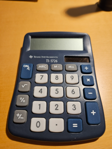 The Texas Instruments TI-1726 is a compact, stylish tabletop calculator introduced in 1998. It features an extra-large SuperView™ display, a well-spaced, color-coded keyboard with contoured rubber keys, and dual power sources: solar and battery. Manufactured in Thailand, this calculator is designed for basic arithmetic operations and is suitable for both students and professionals. The brand, Texas Instruments, originated in the United States and remains under the ownership of Texas Instruments Incorporated, headquartered in Dallas, Texas.