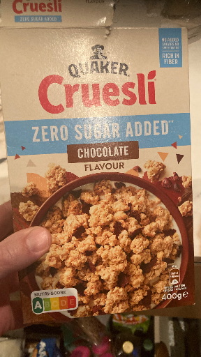 Quaker Cruesli is a popular cereal brand known for its crunchy texture and variety of flavors. The 'Zero Sugar Added' line caters to health-conscious consumers looking for tasty breakfast options without added sugars. Originally founded in the United States, Quaker Oats Company has been a staple in the breakfast food market for many years. The brand is now owned by PepsiCo, a multinational corporation that has expanded its portfolio to include a diverse range of food and beverage products. The manufacturing of Quaker products occurs in multiple countries, ensuring a wide distribution and availability in various markets.