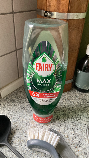 Fairy Max Power is a dishwashing liquid brand produced by Procter & Gamble UK, a subsidiary of the American multinational corporation Procter & Gamble Company. The product is primarily manufactured in the Czech Republic, with other production locations as well. The brand is known for its powerful grease-cutting formula and user-friendly packaging, featuring an upside-down bottle design with a no-flip cap for easy dispensing. Fairy Max Power is available in various fragrances, including lemon and original, and is designed to make dishwashing more efficient by reducing the need for soaking and scrubbing. The product is sold in multiple countries, including the United Kingdom, Ireland, and other European markets, and is recognized for its effectiveness in both warm and cold water, catering to diverse consumer needs.