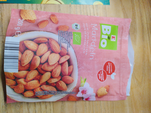 Bio Company is a German retailer specializing in organic products, operating a chain of organic supermarkets across Germany. Their 'Bio Mandeln' are European brown almonds, sourced from controlled organic cultivation. These almonds are versatile, suitable for snacking, baking, or enhancing both sweet and savory dishes. The product is packaged in a 200g size, emphasizing its European origin and organic certification. The almonds are stored in a dry place, protected from heat, and should be consumed soon after opening to maintain freshness. Nutritionally, they provide 624 kcal per 100g, with 54.0g of fat, 5.4g of carbohydrates, and 22.0g of protein. The product may contain traces of peanuts, hazelnuts, and other nuts, catering to consumers seeking organic and healthy snack options.