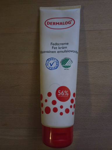 Dermalog Fedtcreme is a moisturizing cream developed by Danish dermatologists to address dry and irritated skin conditions. With a high fat content of 56%, it is particularly effective for treating very dry skin, eczema, psoriasis, and other skin irritations. The cream is free from perfume and parabens, making it suitable for all skin types, including those with allergies or compromised skin barriers. Key ingredients include mandelolie (almond oil), sheasmør (shea butter), and vitamin E, which provide nourishment and protection to the skin. The product is primarily manufactured in Denmark, with some production in other locations. Dermalog A/S, the company behind the brand, is headquartered in Denmark and remains the ultimate owner of the brand.