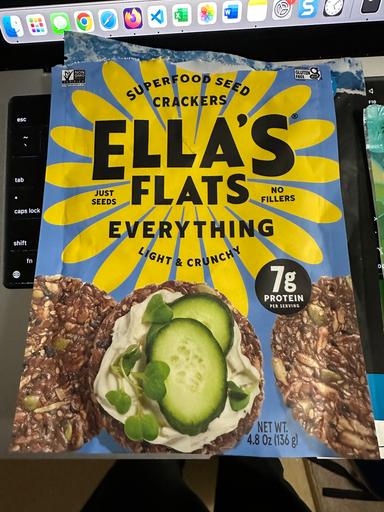 Ella's Flats is a brand known for its superfood seed crackers, offering a healthy snack option that is both light and crunchy. The 'Everything' variety is packed with flavor and protein, making it a popular choice among health-conscious consumers. The brand originated in the United States and is produced in multiple countries to meet demand. Ella's Flats, LLC is dedicated to providing nutritious snacks without fillers, focusing on high-quality ingredients.