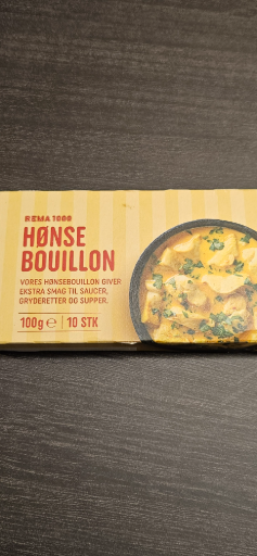 Rema 1000 is a well-known supermarket chain in Denmark, offering a variety of products including their own brand of bouillon. The Hønse Bouillon is designed to enhance the flavor of soups and sauces, making it a popular choice for home cooking. The product is manufactured in multiple countries, ensuring a consistent quality that meets the brand's standards. Reitangruppen, the ultimate owner, is based in Norway and oversees the operations of Rema 1000, ensuring that the brand maintains its commitment to quality and affordability.
