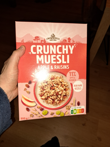 Crownfield is a private-label brand owned by Lidl Stiftung & Co. KG, a German multinational discount supermarket chain. The Crunchy Muesli Apple & Raisins is a cereal product under this brand, featuring a blend of whole grain flakes, dried apples, and raisins. The product is manufactured in multiple countries, including Germany, France, and Italy, reflecting Lidl's extensive European supply chain. As a private-label brand, Crownfield products are exclusively available in Lidl stores, offering consumers a variety of affordable and quality food options.