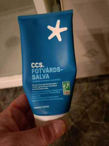 CCS Fotvårdssalva is a moisturizing foot cream/salve formulated for dry feet and calluses (contains ~10% urea and eucalyptus oil), sold in pharmacy channels and marketed as a clinically tested footcare product. The CCS brand states its products are developed and manufactured in Dalarna, Sweden. (ccshudvard.se)