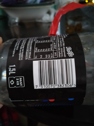 The pictured EAN/UPC (7310070382306) matches Pepsi Max 1.5 L in PET packaging sold in Sweden; multiple Swedish retailer and product listings show this exact GTIN for Pepsi Max 1.5 L. (handla.dagab.se)