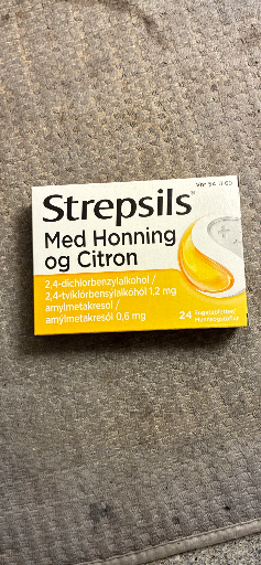 Strepsils Med Honning og Citron er en honning- og citron-smagende sugetablet til lindring af halssmerter — en del af Strepsils-serien af medicerede sugetabletter. Strepsils-markedssiden beskriver produktets smag, anvendelse og pakningsstørrelser for det danske marked. (strepsils.dk)