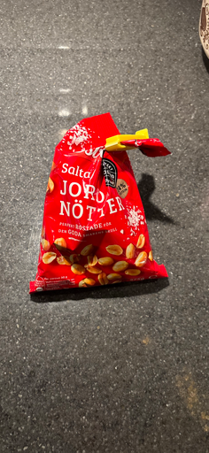 Estrella – Saltade Jordnötter identifieras av den klassiska röda förpackningen med texten "Saltade Jordnötter" och är en etablerad produkt i Estrellas sortiment av rostade, saltade jordnötter. Estrellas egna produktinformation beskriver den som "den klassiska röda påsen" med rostade saltade jordnötter och anger jordnötternas ursprung som Argentina. (estrella.se)