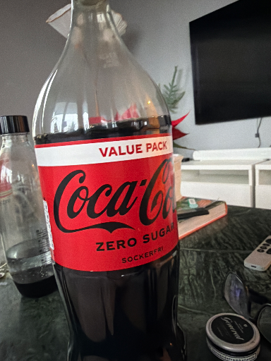 Bilden visar en PET-flaska märkt "Coca‑Cola Zero Sugar" (Value Pack) — en sockerfri cola‑variant. Texten "Sockerfri" på etiketten indikerar att detta är en förpackning avsedd för den svenska marknaden. (cocacolaep.com)