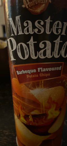 Master Potato Barbeque Flavoured Potato Chips är en barbeque‑kryddad potatischipsprodukt som marknadsförs under Master Potato‑namnet med Gold Harvest‑logotypen. Produktens detaljlistningar och förpackningsbilder matchar "Master Potato Barbeque Flavoured"-etiketter som säljs i exportkanaler och återförsäljare i flera länder. (morgenmarkt.de)
