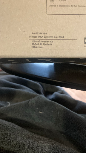 IKEA packaging: The photographed cardboard shows standard IKEA labeling mentioning “Inter IKEA Systems B.V.” and “IKEA of Sweden AB,” indicating this is packaging for an IKEA home‑furnishing product (a flatpack/assembly product).