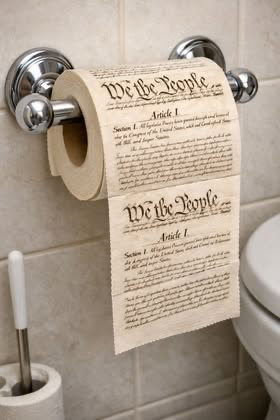 This item is a novelty / gag toilet paper roll printed with the opening words and text of the U.S. Constitution (the Preamble starting "We the People"). The design copies historic Constitutional text rather than identifiable commercial packaging or a specific consumer brand. (archives.gov)