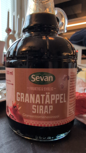 Sevan Granatäppelsirap är en 250 ml fruktsirap/condiment (granatäppelsirap / granatäppelmosliknande sirap) som används som smaksättare i sallader, marinader och som topping. Den svenska märkningen "Granatäppelsirap" syns tydligt på etiketten.