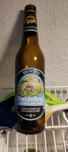 Summary: The bottle in the supplied image is Skovlyst’s NældeBryg (alkoholfri stout). The brand is Danish (Skovlyst Production A/S), the alcohol‑free NældeBryg is produced via Skovlyst’s partner breweries (primarily brewed for alcohol‑free lines by Egger in Austria), and the brand/company is headquartered in Denmark and remains privately held through Skovlyst Production A/S and associated shareholders. (skovlyst.com)