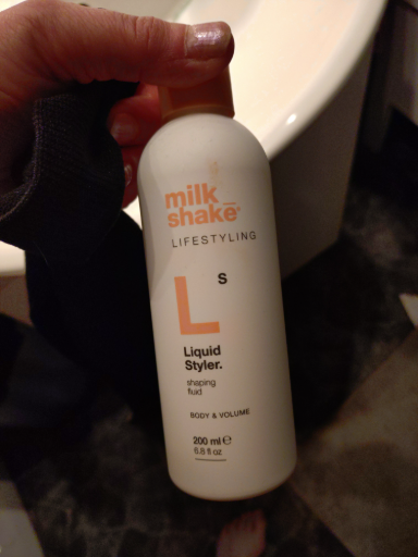 This bottle is milk_shake® Lifestyling Liquid Styler — a styling and defining fluid (liquid styler) sold in 200–250 ml sizes and marketed for body, volume and flexible hold. (us.milkshakehair.com)