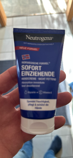 Die abgebildete Tube ist die Neutrogena Norwegische Formel – "Sofort einziehende" Handcreme, eine glycerinreiche, nicht fettende Handpflege aus der "Norwegische Formel"-Linie. Dieses Produkt wird in Europa häufig als "konzentrierte Handcreme" oder "express absorption" angeboten und beworben.