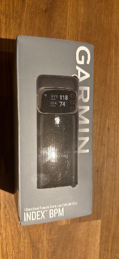 The pictured product is the Garmin Index BPM (model BP707), a smart upper‑arm blood pressure monitor that displays systolic/diastolic pressure and pulse and syncs measurements to Garmin Connect for long‑term tracking. (manuals.plus)