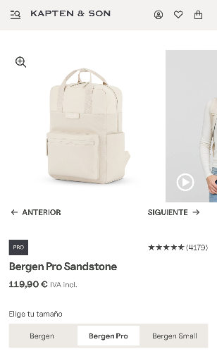 The pictured item is the Bergen Pro in the Sandstone colourway — a Kapten & Son urban daypack with a laptop compartment and roughly 12–15 L volume marketed as the "Bergen Pro" model on the brand site. (kapten-son.com)