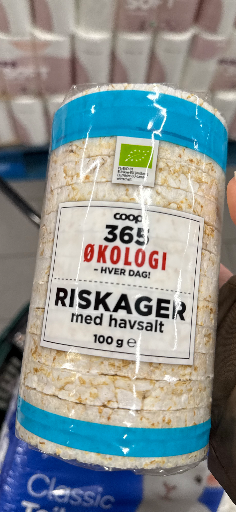 Coop 365 Økologi Riskager med havsalt er en økologisk riskage (rice cake) solgt under Coops 365Økologi private-label i Coop-butikker i Danmark. (coop.dk)