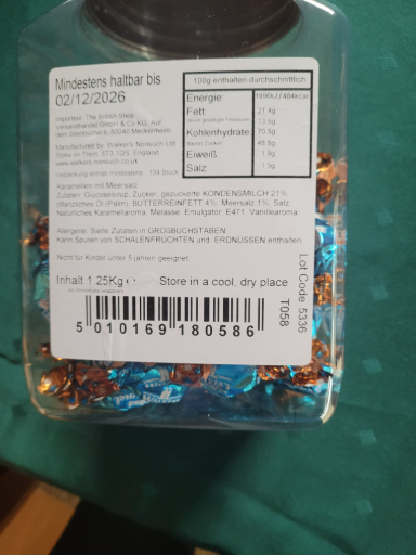 Walker's Nonsuch Salted Caramel Toffees (1.25 kg jar) are a twist-wrapped salted caramel toffee product produced by Walker's Nonsuch. The jar size and nutritional profile on the photographed label match the manufacturer's 1.25 kg jar of Salted Caramel Toffees.