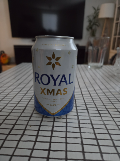 Royal X-MAS is a seasonal Christmas beer (julebryg) sold under the Royal brand. The can in the photo shows the Royal X-MAS design and the alcohol strength (5.6% vol.), and the can text indicates it is brewed in Denmark. The Royal brand originated in Denmark (first appearing in the 1980s under Ceres) and through brewery mergers and reorganizations became part of the group now known as Royal Unibrew A/S. Today Royal Unibrew is the ultimate owner and producer/marketer of Royal-branded beers; production for Royal X-MAS is carried out in Denmark as a seasonal offering for the Danish market and wider distribution where Royal Unibrew sells its portfolio.