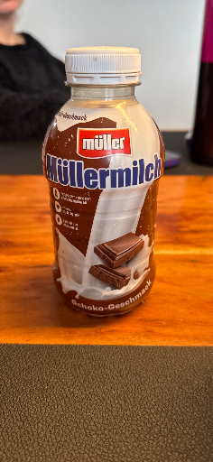 Müller Müllermilch Schoko is a ready-to-drink chocolate-flavoured milk beverage sold in a 400 ml plastic bottle and produced by Molkerei Alois Müller in Aretsried, Germany. The product packaging shows the Müllermilch branding and the flavour designation (Schoko / Schoko-Geschmack); product listings and retailer pages list the 400 ml bottle and the Molkerei Alois Müller manufacturer details. (knuspr.de)