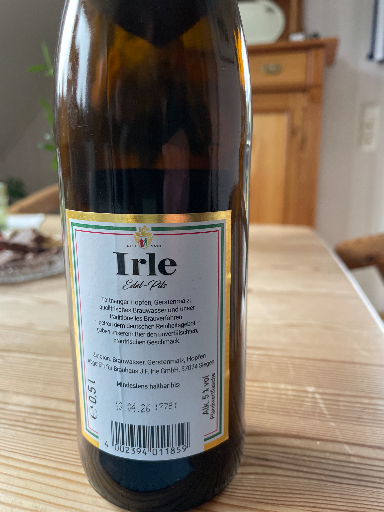 Irle Edel‑Pils is a traditional German Pilsner produced and sold under the Irle brewery name; the bottle shows typical labeling for the Irle Edel‑Pils (0.5 L, ~5% ABV) brewed in the Siegerland region. (beertasting.com)