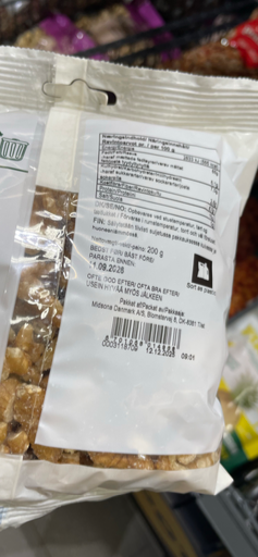 Practical note: the back label in the supplied photo shows Midsona/Midsona Danmark distribution text and a 200 g weight / best‑before formatting consistent with Earth Control retail packs; this supports identification as Earth Control nut/fruit mix distributed by Midsona Danmark. (mynewsdesk.com)