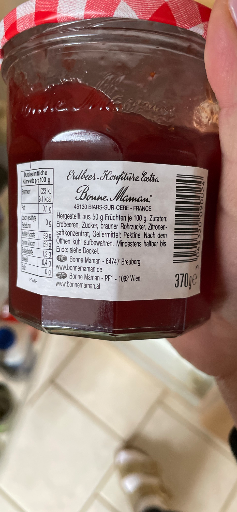 The jar in the photo shows the German language label and weight (370 g), consistent with Bonne Maman jars sold across EU markets. The barcode value was not legible in the image, so it is marked as not available.