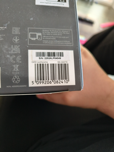 The visible barcode (EAN/UPC-style) on the image corresponds to the EAN range used for Logitech G432 retail packaging (packaged G432 listings show EANs in the 5099206... series and the part number 981-000770 / 981-000769 appears on retail pages). (business.currys.co.uk)