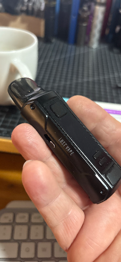 Lost Vape is a Shenzhen-based vaping hardware brand, and the device photographed is a Lost Vape pod system (pod mod) — a small, rechargeable electronic cigarette designed to use replaceable or refillable pods. The visible "LOST VAPE" marking on the side identifies the brand.