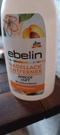 Der Artikel ist der ebelin Nagellackentferner mit Aprikosenduft (Acetonfrei) – ein acetonfreier Nagellackentferner, der Aprikosenkernöl enthält und typischerweise in 125 ml (oder 200 ml) Verpackungen angeboten wird. Die Formulierung zielt auf schonende Entfernung von Nagellack, ist parfumiert (Aprikosenduft) und wird von dm als vegan bzw. frei von bestimmten Zusatzstoffen beworben.