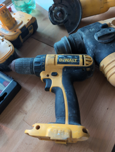 The pictured item is a DEWALT cordless drill/driver body (battery removed) — a handheld power tool in DEWALT’s yellow-and-black professional range. The visible DEWALT nameplate and characteristic color scheme identify it as part of DEWALT’s power-tool family rather than a different brand.