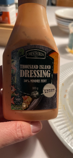 Chestfords Thousand Island Dressing (Light) er en dansk-markedsført salatdressing/condiment i Thousand Island-stil, markedsført som en "light" variant med "30% mindre fedt". Etiketten og dansk tekstindhold indikerer, at produktet er tiltænkt det danske marked.