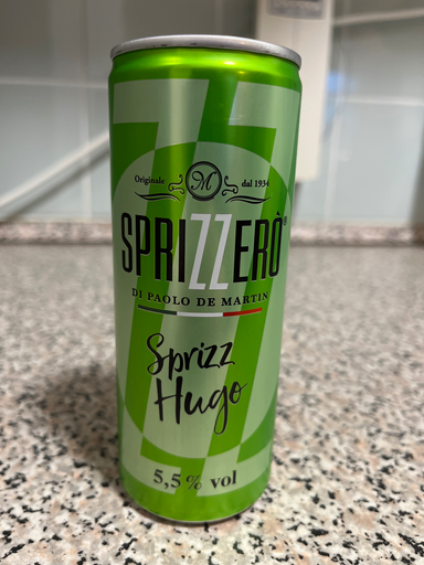 Sprizzerò Sprizz Hugo is a ready-to-drink (RTD) wine-based aperitif packaged in a 250 ml can and labelled at 5.5% vol. It is a canned interpretation of the Hugo cocktail, featuring notes of elderflower and mint and positioned as a summer-style spritz product.
